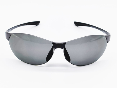 「FLAT09」のレンズ形状違い。 オーバルシェイプのレンズは、男女兼用のモデルで優しい雰囲気を演出します。 顔にフィットする8カーブレンズは、風の巻き込みやホコリを防ぎます。
